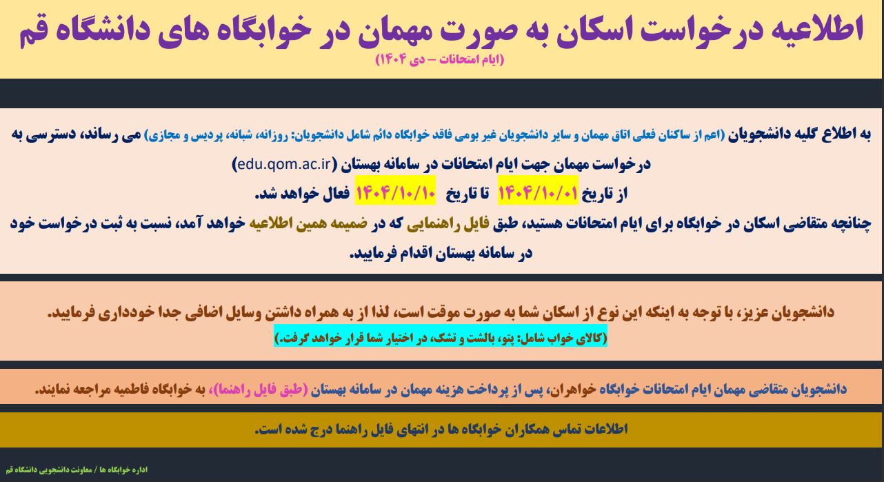 نحوه درخواست اسکان به صورت مهمان در خوابگاه های دانشگاه قم (ویژه ایام امتحانات) جهت دریافت فایل راهنما، اینجا کلیک فرمایید. گروه خبری : اداره خوابگاه ها کد خبر : 6218 کپی لینک کوتاه کلمات کلیدی اسکان_مهمانامتحاناتاداره_خوابگاه_هادانشگاه_قم
